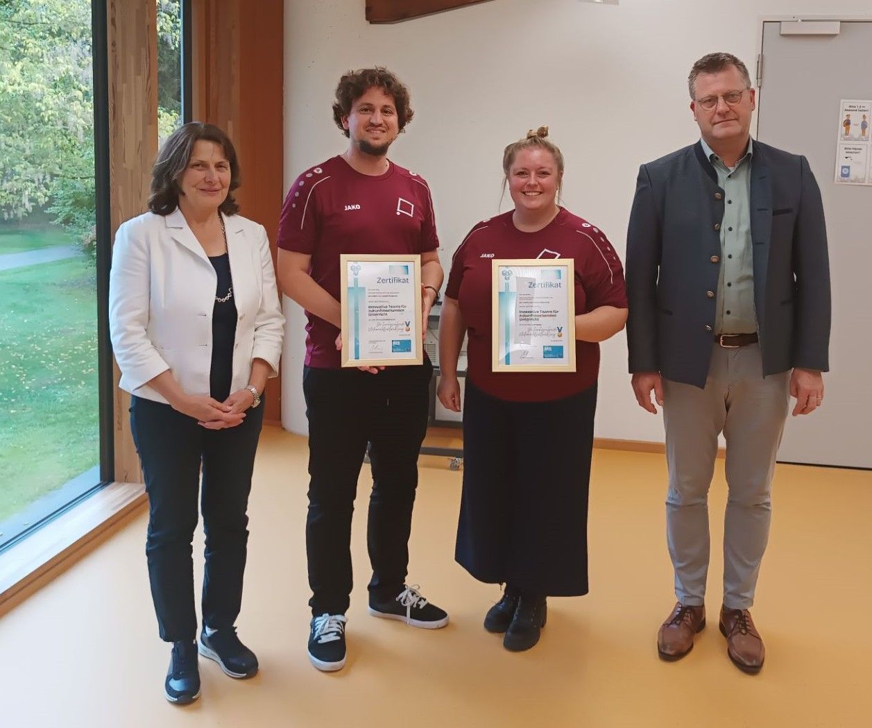 Stolz nahmen Frau Simbeck, Herr Schmid und die Schulleiterin Frau Mödl die Urkunden von MB Herrn Heimes entgegen