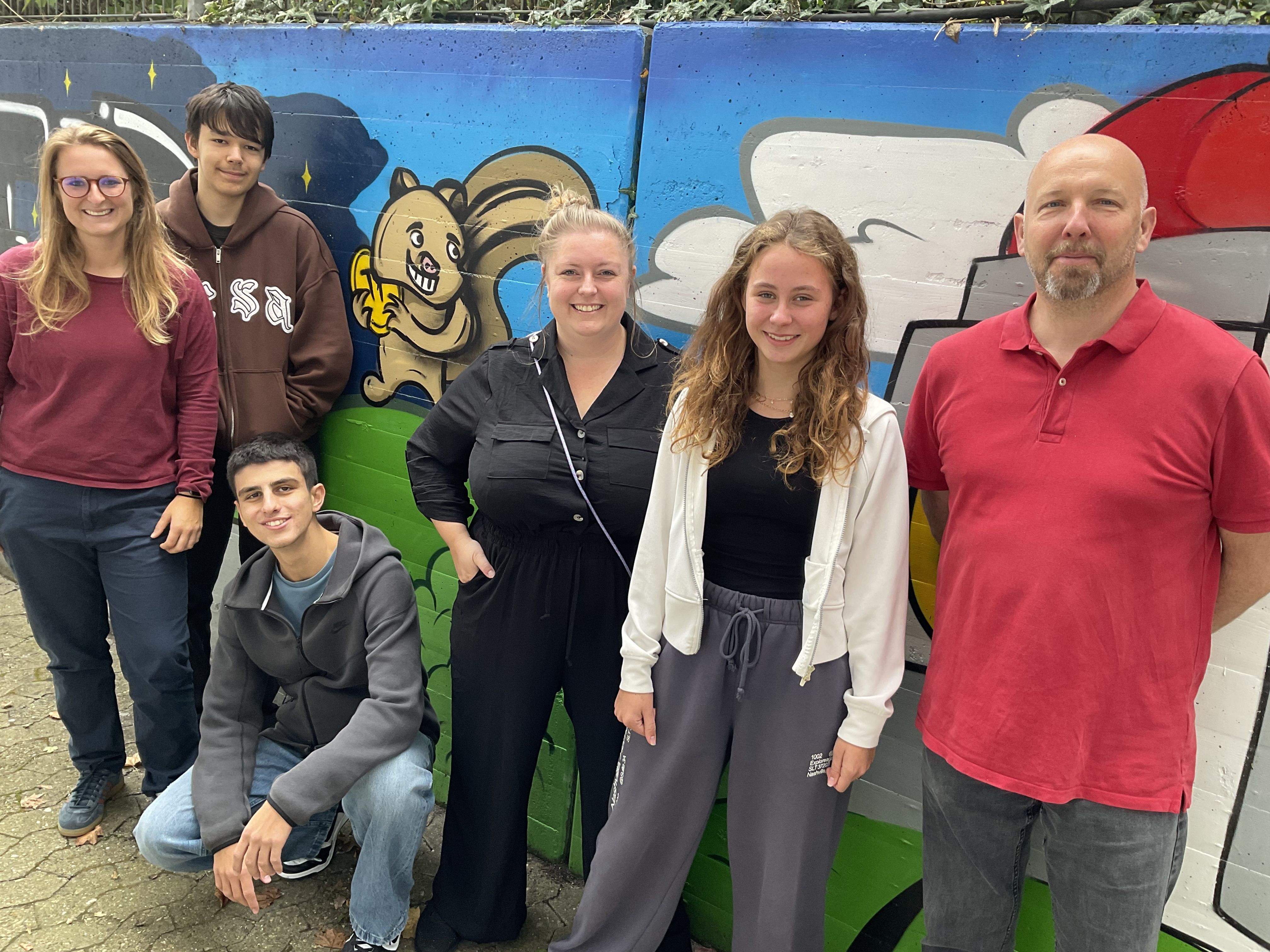 Mit frischem Elan und vielen Ideen starten unsere neu gewählte Schülersprecherin und die Schülersprecher – Christos, Zejd und Isabella – gemeinsam mit den neuen Verbindungslehrkräften Frau Antoniak, Frau Simbeck und Herrn Lippels in das Schuljahr!